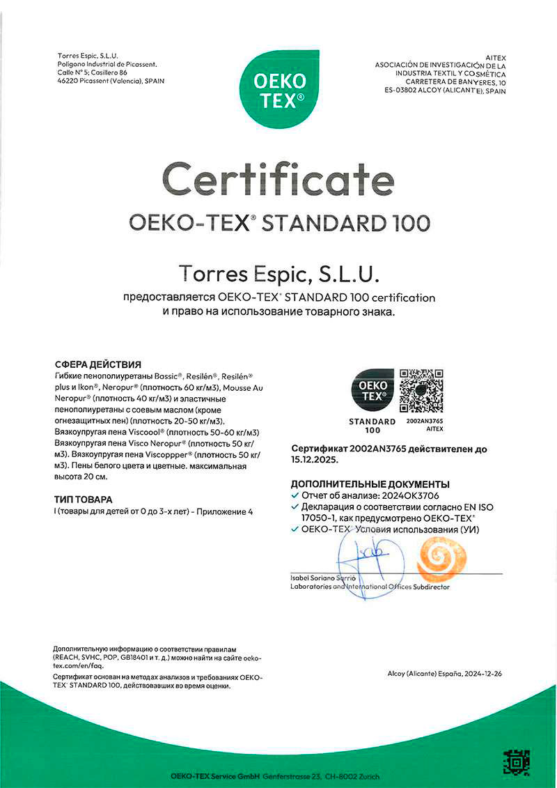 Упругий, износостойкий наполнитель. Хорошо распределяет нагрузку, подчёркивая ортопедический эффект. За счёт отсутствия ответного массе тела сопротивления (как в пружинном блоке) давление на сосуды и суставы во время сна отсутствует. Уникальный материал для индустрии сна.
